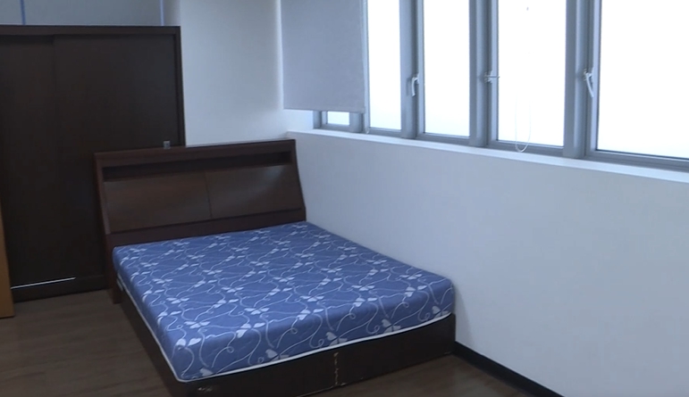 隱藏版的小房間不大,裡頭有雙人床,衣櫥裡還放著韓國瑜使用過的枕頭、棉被,浴室裡白色石磚搭配藍色地墊,淡藍色浴簾,還有浴缸,看起來簡單乾淨,小房間就像單身小套房,也可以讓有點小潔癖的韓國瑜沖澡換衣服。
