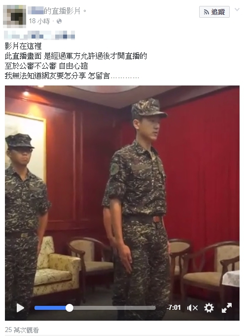 今天下午,三名士兵確實到海軍總部,但海軍卻說為保護士兵安全,不能讓士兵出來。我們也妥協了,只要求派代表到總部內接受道歉,並錄影向民眾公布,軍方一口答應,很願意讓我們拍攝,根本沒有勸阻一事。