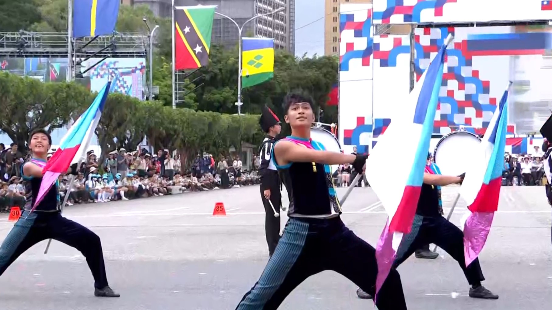 雙十國慶大典今(10)天在總統府登場,許多友邦前來共襄盛舉,包含諾魯總統賢伉儷、聖文森及格瑞那丁總督朵根,日本、美國樂隊也受邀參演,網路節目《木曜4超玩》的班底邰智源、阿部瑪利亞也現身,成為亮點。