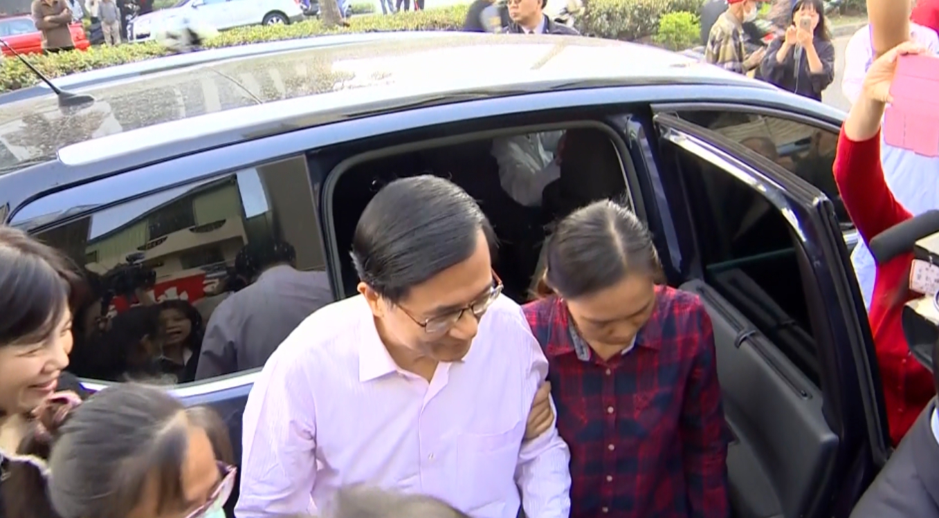 ▼陳水扁在攙扶下,走入支持群眾