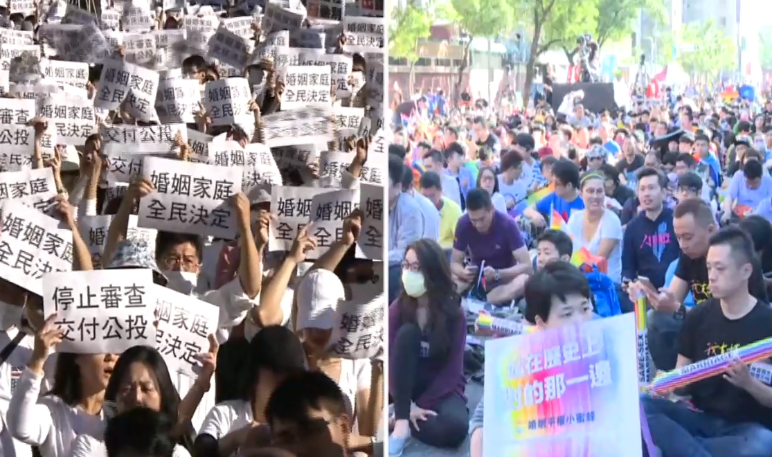 ▼立法院今(26日)審查婚姻平權民法修正案,挺同、反同團體同上街頭表達立場