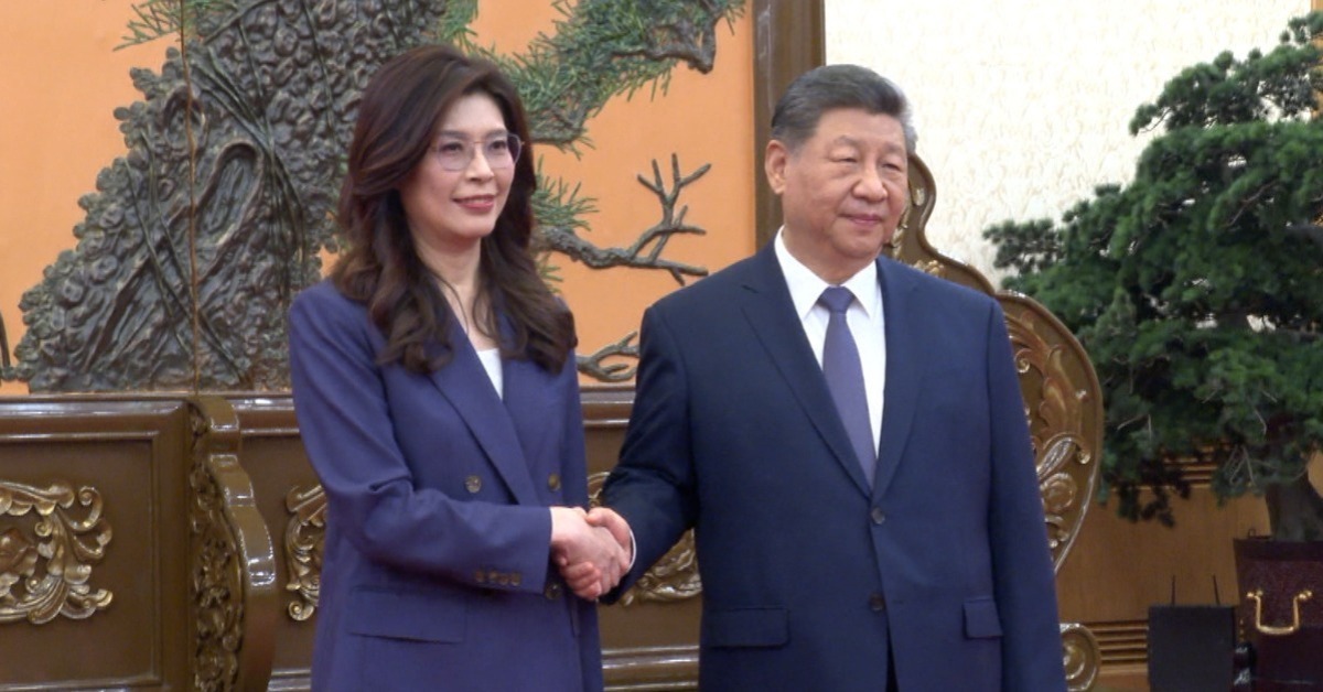 睽違10年國共兩黨領導人終於再次會見。國民黨主席鄭麗文一襲代表國民黨的深藍色俐落套裝,與中共總書記習近平在北京人民大會堂「東大廳」會晤,雙方初次見面握手就長達14秒。兩人隨後聚焦兩岸和平,「九二共識、反對台獨」成為雙方的對話基礎。
