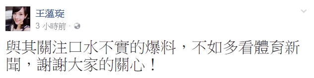而王薀琁不久後也在臉書表示「與其關注口水不實的爆料,不如多看體育新聞,謝謝大家的關心」,疑為針對此事的回應。