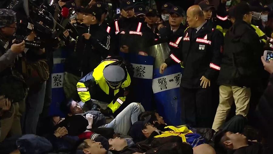 表決,此言一出引爆藍綠大亂鬥,正當會議室內亂成一片,電燈突然被關閉,黑燈瞎火中媒體拿出設備照明,也有不少立委拿出手機充當手電筒。