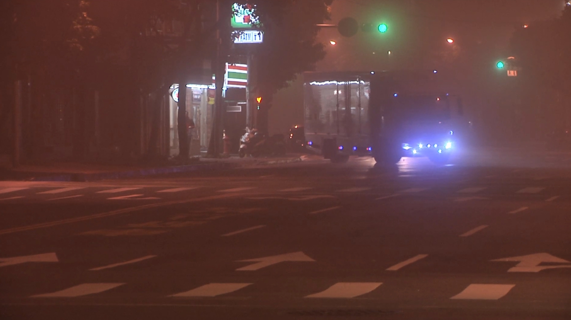濃霧,路上霧濛濛的一片,路燈的燈光變得很朦朧,能見度很低,不少人行車的速度都變得比較慢,包括北投、南港、松山、信義、新莊、三重等地區,都有出現濃霧的現象。而中和地區則剛好發生