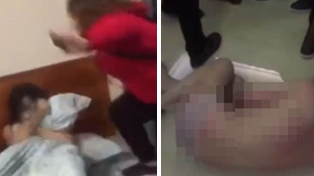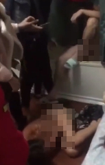 大老婆抓猴在床的影片在微博瘋傳,人妻找來一堆親友到家裡,衝進房裡就見老公和小三裸身蓋棉被聊天,全身只穿一條內褲,人妻一個箭步跳上床猛踢小三,把人敢下床後繼續狂踹,並爆扯頭髮拖拉到客廳施虐。「給我拍她的臉!拍!」由於小三裸上身,用雙手護著臉和胸部,完全無法抵抗人妻暴力相向,最後披頭散髮蜷曲在冰冷的地上,皮膚被打到一塊一塊紅腫。