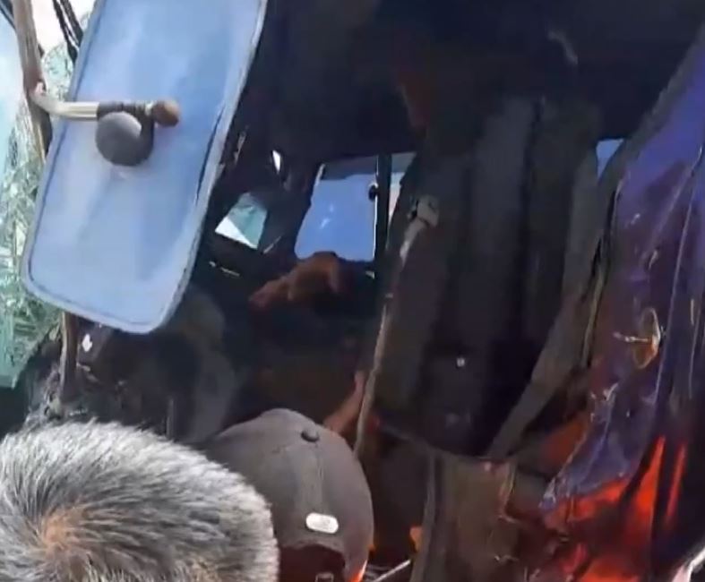 國光客運車頭全毀,整個車體嚴重破壞,遊覽車右側被砂石車撞凹,砂石車一樣車頭全變形,消防隊員試圖用各種工具破壞車頭,就是因為砂石車駕駛還困在駕駛座動彈不得,情況一度很緊急。花了將近一個小時,消防隊員才成功把駕駛救出來,身上有多處受傷,駕駛表情相當痛苦。