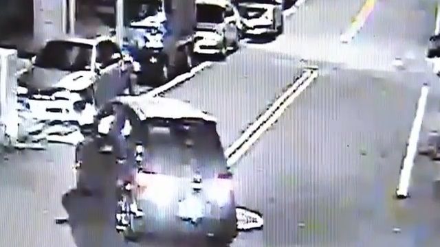 監視器拍下凌晨3點多,一台黑色轎車好端端行駛在路口,不過就在這時轎車突然倒車,接著加速往前行駛,過沒多久又開回原地,在路口繞圈子,下一秒更誇張,黑色轎車直接衝向對向車道,撞毀停在路邊的銀色轎車。