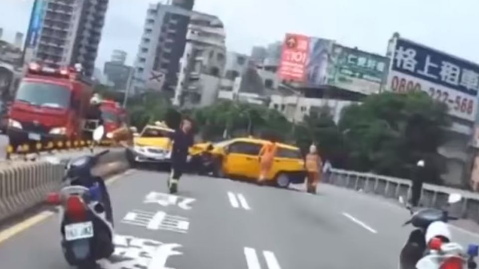 」,跟對向計程車發生對撞,騎士連人帶車摔飛後全身多處