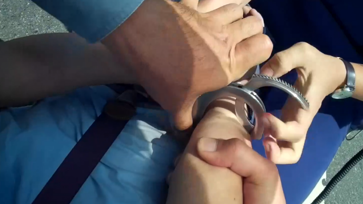 ,甚至比出不雅手勢,當員警要請他下車時,竟然踩油門往前衝,員警當場被拖行將近50公尺。