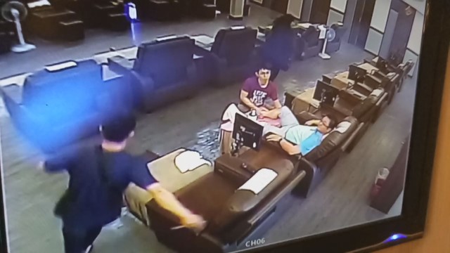 彭男的雙眼因為被辣椒水噴到而痛苦難耐,不斷地向警方跪地磕頭求饒,連忙說「我錯了」,並拜託員警讓他用水清洗眼睛,和不久前逞凶鬥狠的模樣完全判若兩人,讓在場的其他民眾不禁暗自竊笑:「瞬間變成龜孫子」。