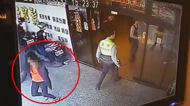 恐嚇林女說:「如果警察往我來,就先殺你!」所幸附近店家報警後警方即時趕到現場,一度好言相勸彭男放下武器,但他仍不為所動,警方只好對他噴灑辣椒水,並以警棍壓制。