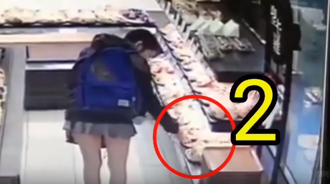 短裙的年輕女子,一連挑了7、8個麵包入袋,最後卻只拿出1個結帳,讓店家氣得PO公布影片大罵,並提醒網友小心。
