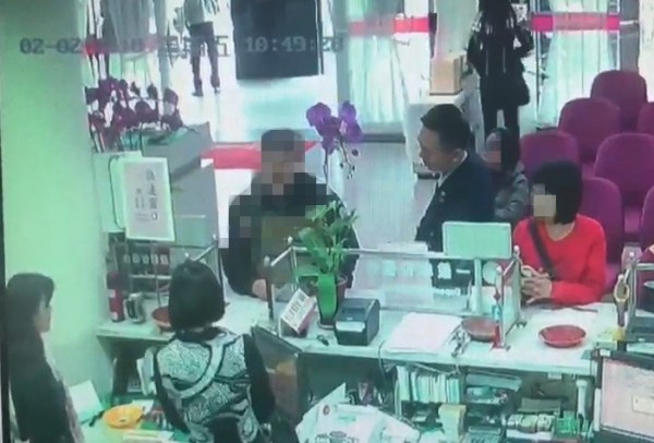 ▼陳男(左)在行員與警察的勸說下,終於醒悟不再堅持匯款(圖/翻攝畫面)