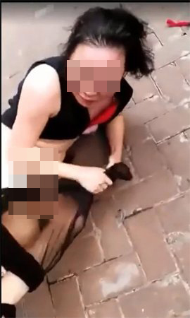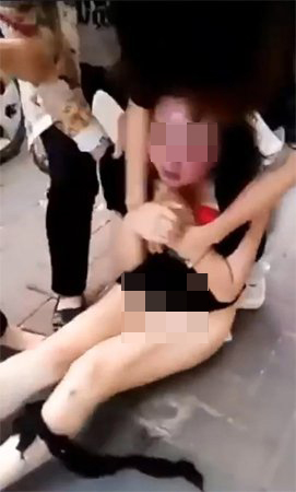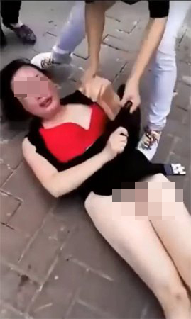 暴打。而在這群人中,似乎有正宮的女兒,她一邊奮力扯著女子的內衣,一邊怒罵「賤人」、「你就這樣對付我媽的是不是?」、「你就是這樣給你女兒做榜樣的嗎?」