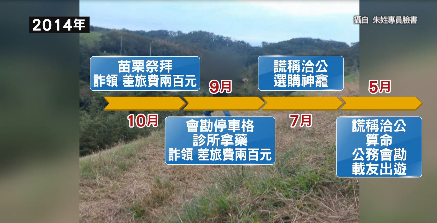 除此之外,朱男還在同年10月,於上班期間到苗栗老家祭拜,時間長達2小時;甚至在11月時,再度到中壢區算命,混水摸魚1個半小時才慢慢回到縣府工作。新竹地院法官認為朱男行徑實在太誇張,不但公器私用開公務車,外出辦個人私事,還貪小便宜詐領差旅費,不法所得為3252元,因此依照貪汙等罪判朱姓專員2年徒刑、可緩刑5年,並褫奪公權1年,還需上繳公庫6萬元。