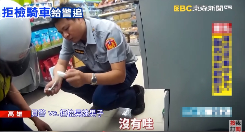 男子面對員警攔查,先假裝要停車,又突然間加速,警方一路尾隨,但男子沒有在怕,甚至在轉彎地方壓車,機車中柱跟地面磨擦發出火光,根本是在玩命關頭,最後男子停車了,不過他卻立刻衝進了超商,在飲料櫃前拿了一罐脾酒,打開喝下去。