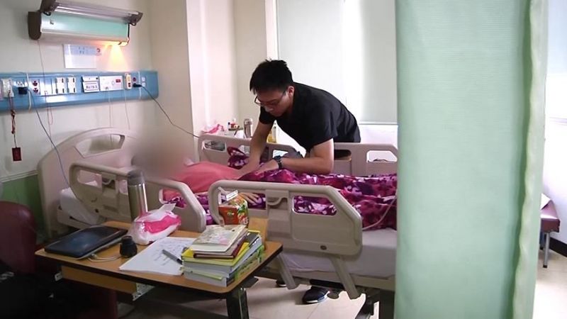 媽媽去年中檢查出下頷腺癌,原以為開刀治療之後已經康復,但是去年底檢查發現癌細胞擴散,兒子休學在家照顧媽媽三個月,上個月媽媽身體更虛弱了,他陪著媽媽帶著行軍床住進安寧病房。劉信宏表示,「我有跟媽媽說要先陪妳,書再念就有了,先把媽媽的事處理到一個段落再回去念書,我有答應過她我也把書念完。」