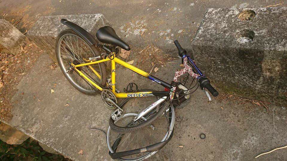 ▼現場遺留男童摔爛的腳踏車(圖/東森新聞)