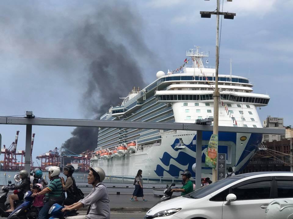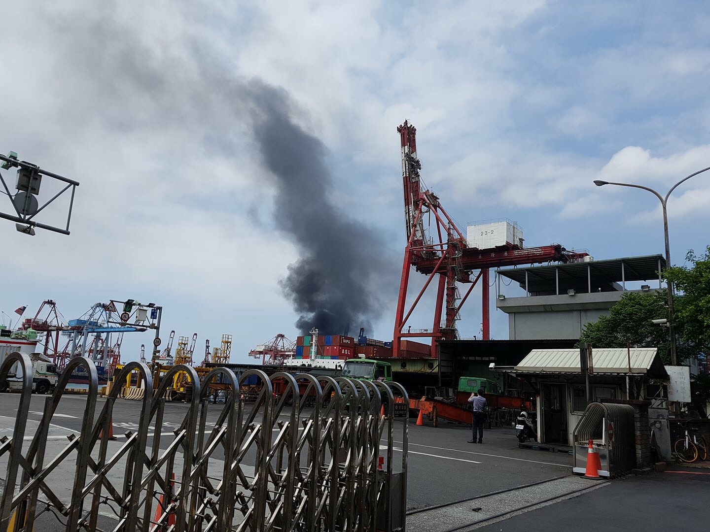 ,濃濃黑煙,連在基隆市區都看的到。根據了解,是碼頭上的一台貨櫃推高機不知甚麼原因,起火燃燒,目前有無人員受傷,還在了解中。