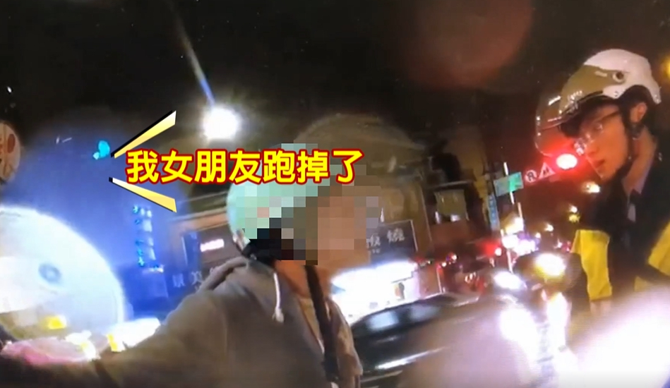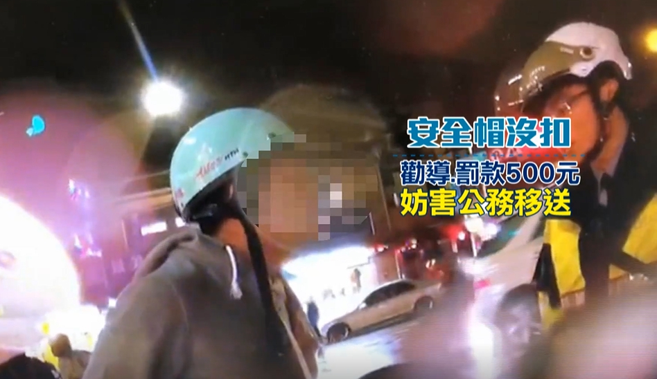 「你手上拿安全帽幹嘛?」陳男聽到員警這樣問,隨即大喊「我女朋友跑掉」,員警聽得一頭霧水,回應「然後咧,跑掉關我們什麼事…不要波及我好不好」,陳男又接著反問「我波及你什麼」,員警好言相勸「不要挑戰公權力」,但陳男不聽勸,又嗆「我怎麼樣,我違規了是不是?」員警則無奈表示「沒錯,違規」