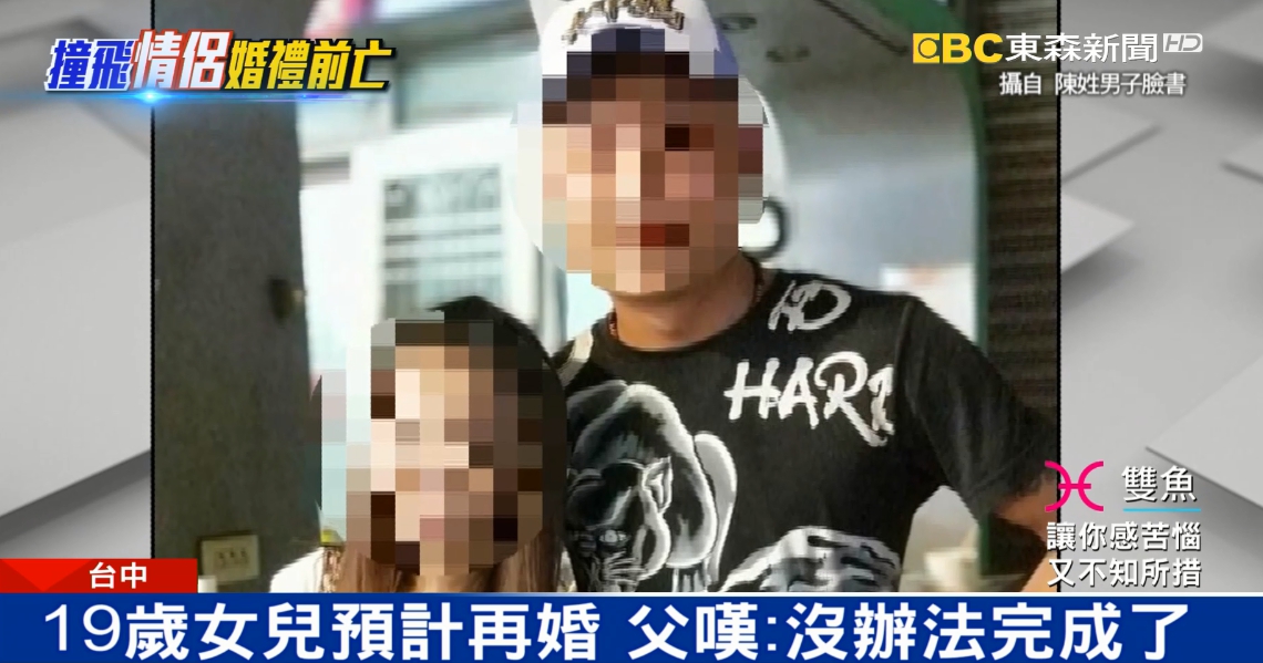 被撞死的這對情侶檔,男生24歲,女生只有19歲,2人本來打算在王姓女子20歲的生日時登記結婚,但現在卻沒辦法了。據了解,其實兩個人都是再婚,男生有兩個小孩,而女生也有一個3歲的女兒,她的父母都很難過,要幫忙照顧孫女之外,還得煩惱女兒的喪葬費,他們抱怨肇事者事後態度冷淡,相當不負責。