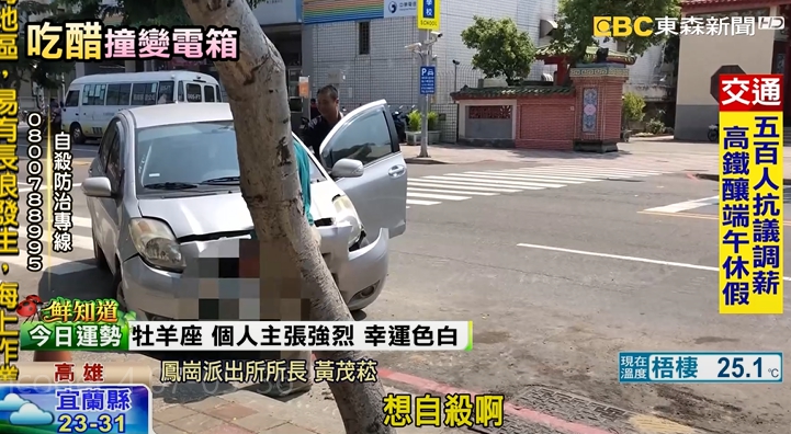 鳳崗派出所所長黃茂菘:「在五分鐘之後,我們派出所就聽到一個很大的聲響,婦人去衝撞工地前面的電箱,我們問她為什麼要這樣子,她說:『她回家的路上越想越氣,就開車回來撞電箱,想自殺啊!』。」婦人因為懷疑先生有小三,吃醋想不開,開車撞路旁的變電箱,雖然很快被救出也沒有受傷,但變電箱裡還有各種電纜線與光纖的線,若是因此造成線路中斷或其他的損失,婦人可能要因此付出高額賠償費。