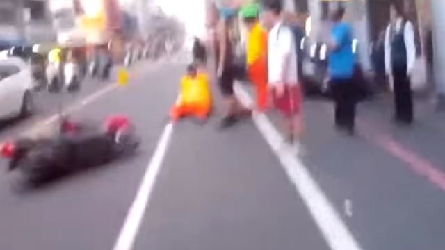20號下午嘉義市仁愛路發生悲劇,李姓女老師要過馬路,但沒走斑馬線違規闖過去,這時候穿橘色運動服的學生衝過來,他騎機車沒戴安全帽車速很快,撞上女老師。女老師被撞倒在地上,男學生嚇到先是站起身,後來又癱軟在地,路人立刻報警。