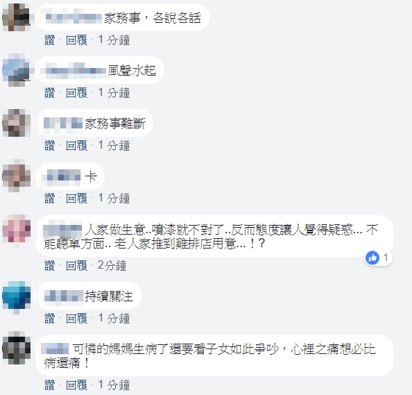 文章一出,隨即引起論,雖然大嫂血淚控訴,不過網友一面倒認為事有事有蹊蹺,紛紛留言「感覺…應該另有說法」、「家務事很複雜的」、「事情一定沒有那麼簡單」、「家務事還是要聽聽雙方說法」、「這篇文章,我只知道老人家最可憐,根本就是一顆球,其他人只是利用老人家」、「也應該聽聽弟弟的說法,畢竟家家有本難唸的經,說不清的」、「感覺內情不單純…推著年邁的母親還掛牌子也沒孝順到哪裡去」。