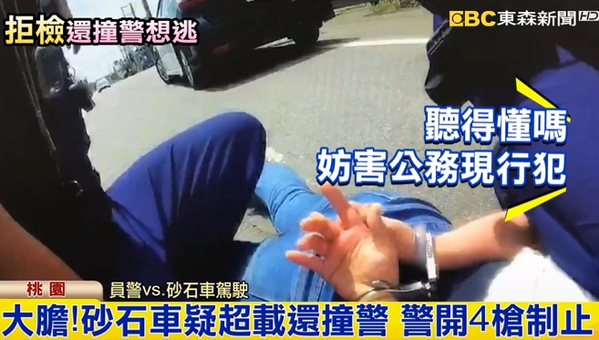 實在很緊張,因為砂石車差點就撞上後方員警。情況很緊急,員警只好朝砂石車輪胎,連開四槍,將楊姓駕駛拖了出來。駕駛被壓制在地,不斷掙扎哀號還不停反抗。