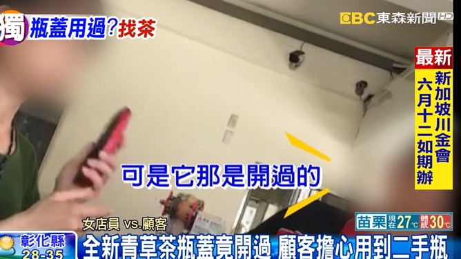 顧客急忙回店裏理論,因為買回家後才發現,這原本應該是密封的青草茶竟然被人打開過,瓶蓋下方的卡榫已經不見。顧客擔心店家賣給他的青草茶,是用別人使用過的瓶子,店員則極力否認。
