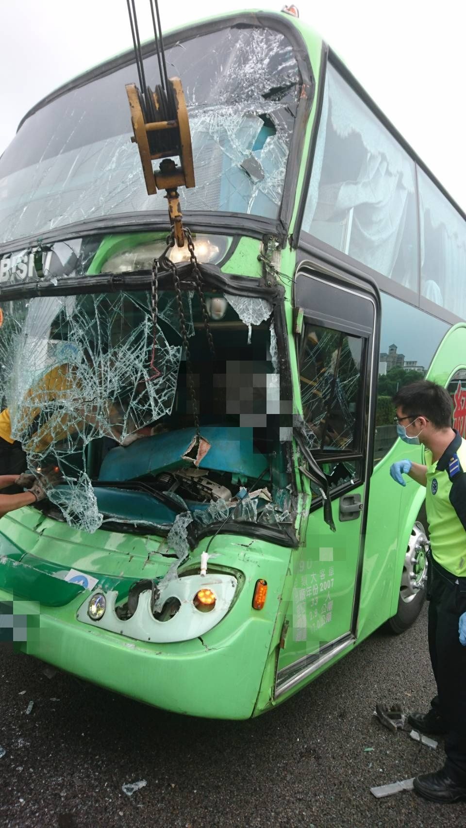 客運高速公路追撞!擋風玻璃碎裂 多人受傷