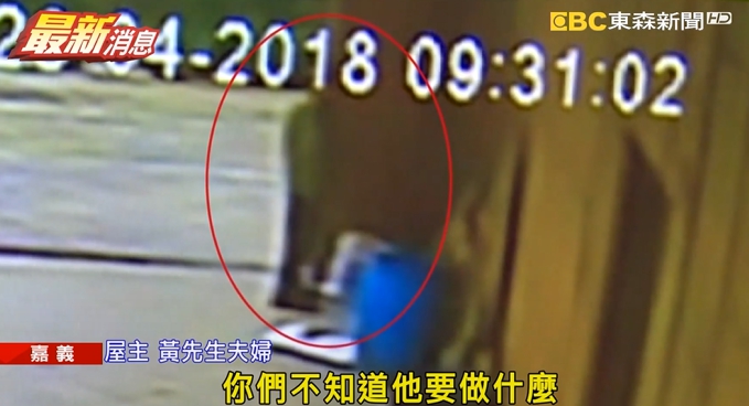 民宅外的監視畫面,看到遊覽車停靠門前的空地後,車上的陸客下來舒展筋骨,但是只見這名男陸客就往民宅方向直直衝了下來後,左右看看沒人,他就往牆角一站,竟然方便起來。這時民宅裏有人探出頭來,出聲制止已經來不及了,隨地小便的陸客也覺得不好意思,合掌道歉。