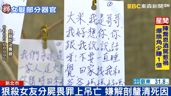 上吊身亡,檢警為了釐清死因,今天上午解剖凶嫌遺體。另外要追查的重點還包含,黃姓死者被分屍後,目前還找不到頭髮跟部分器官,以及凶嫌父母被檢警懷疑疑似協助兒子滅證。
