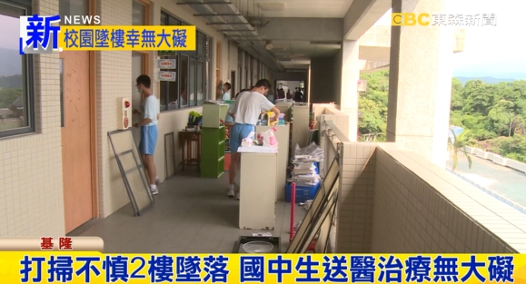 學生們拿著掃把、抹布把教室裡裡外外好好整理一番,基隆中正國中在下午三點多,全校正在大掃除時,一名九年級男學生不慎墜樓受傷。