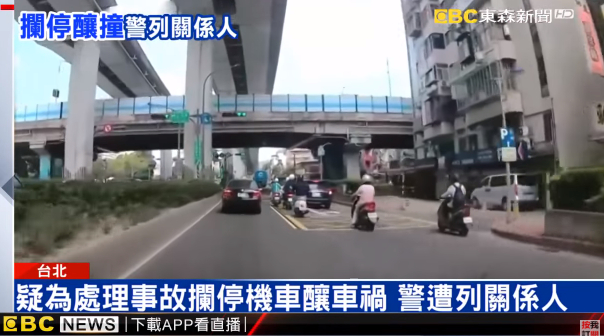 員警處理車禍事故卻被列為關係人!5月18早上九點多,台北新生北路上發生一起車禍,警方到場處理,現場卻有機車未保持安全距離造成四部機車追撞,其中還有兩名騎士受傷,警方被指控因當時為了處理車禍,攔停機車才會造成追撞,也因此被列為關係人。