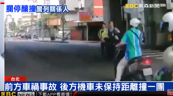 18號早上九點多,台北市新生北路上發生車禍,警方獲報到場處理事故,在場指揮交通,沒想到,就在這個時候,卻又發生機車追撞意外,也讓附近店家看傻眼。