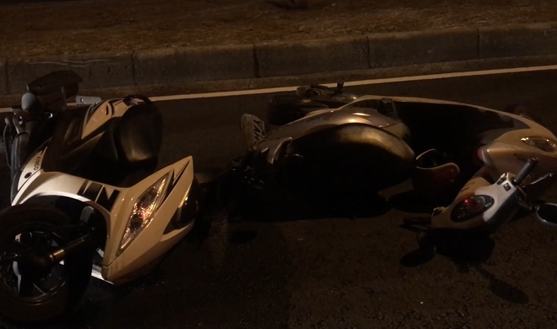 原來畫面中這台機車,打橫著停,就是因為與人發生擦撞,但疑似燈光昏暗,讓後方車輛沒注意,再度追撞,根據了解,起初是一位女騎士疑似重心不穩,擦撞到情侶機車騎士,雙方正要釐清車禍責任,不慎又遭後方女高中生追撞。