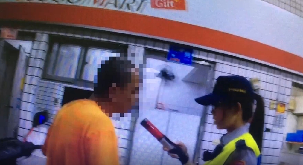 警方氣喘噓噓跑進加油站,因為身穿橘色衣服的男子,一見警方攔查,竟然轉進加油站,警方一靠近男子就聞到滿身酒味,但他卻辯稱自己是想上廁所,才騎進加油站,只是警方要對他酒測,他開始裝傻,第一次怎麼吹氣都不成功,警方好聲好氣再來第二次,還是一樣,警方開始有點惱怒,男子才乖乖配合。