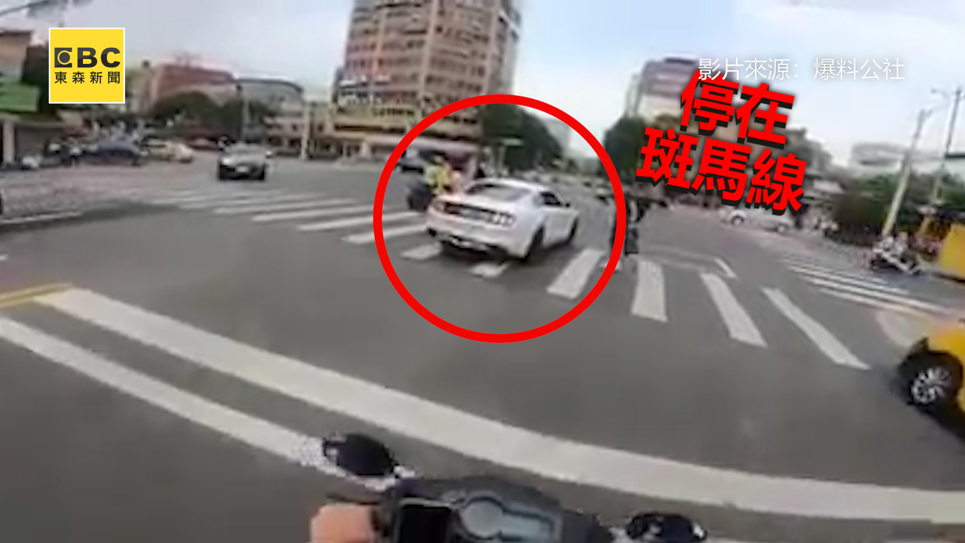 一位網友在臉書「爆料公社」上PO文,當他騎車準備停在機車停車格時,注意到前方一輛跑車不知是想搶黃燈失敗,還是未注意、想停就停,竟橫停在