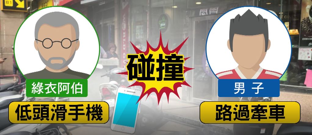 ▼手機被撞掉好心疼,老先生向對方要求賠償自己被撞掉的手機,對方卻懷疑遭「手機黨