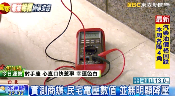 三用電錶」測試電壓,並沒有出現明顯的「降壓」問題。對此,台電也澄清電壓本來就會隨著用電負載變動,並沒有