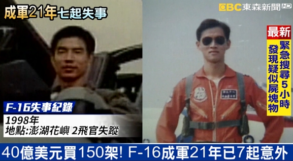 引擎轟轟作響一飛衝天,我國向美國採購150架F-16戰機,1997年成軍。成軍之初狀況連連,不到一年就發生在澎湖花嶼戰機失蹤,1999年,一年內就接連發生3起失事意外,造成2飛官