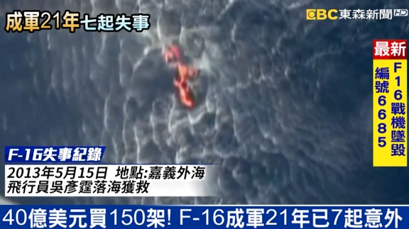 F-16戰機,由於推力大、爬升快,迎戰敵機速度可以六分鐘出擊,被稱為性能絕佳的二代戰機,但從1997年成軍至今,陸續發生七起失事、