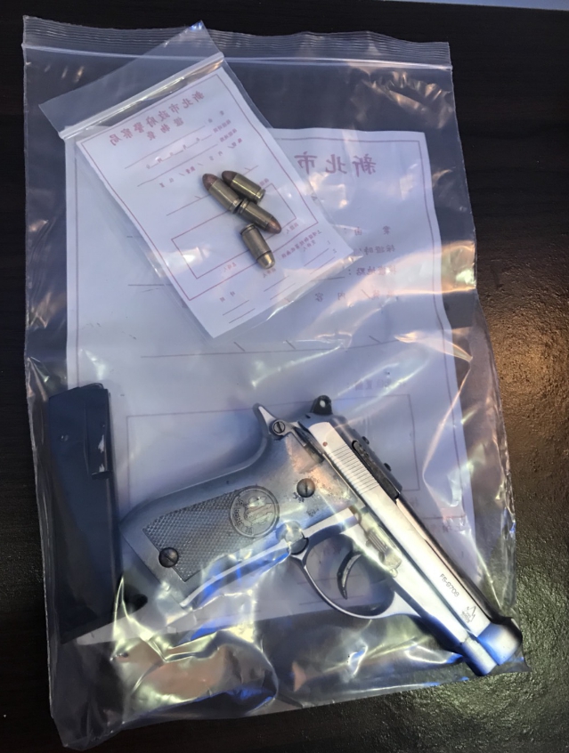 22:20更新:因肇事逃逸通緝在案的陳姓嫌犯,目前主動交出一把手槍、一個彈匣及4發未擊發子彈,警方仍在喊話中。