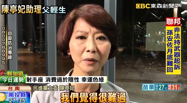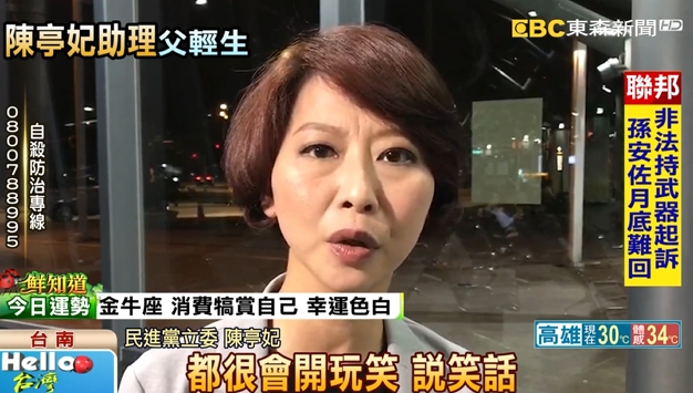 民進黨立委陳亭妃:「因為他平常真的是工作很認真,而且也很盡責,這個事情發生,我們覺得很難過。」