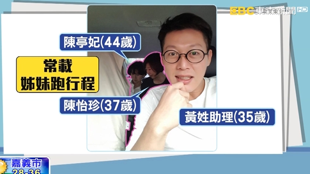 據了解,35歲黃姓助理,擔任陳怡珍的司機兼助理將近三年了,常載44歲陳亭妃和37歲陳怡珍一起跑行程。黃姓助理也常在臉書po出和陳怡珍及陳亭妃的合照,還常稱他們是「貴人」和「女神」難道是感情糾紛?