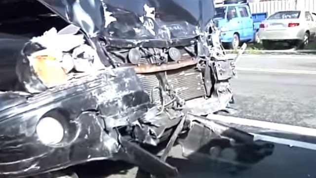 一輛黑色轎車停在路中央突然往前爆衝,先是撞上機車騎士後就直接往客運及休旅車撞下去,一旁路人全看傻了眼,但這還沒完,駕駛突然倒車衝撞後面三輛轎車,接著又加速往前撞,當場把客運車身撞了一個大洞,黑色轎車這時在往後倒退才停了下來。目擊民眾:「很快的倒車往後面撞,然後他們的車想要趕快跑,他們想說他這樣子撞會不會受傷,結果他撞完這邊之後他又往前衝。」