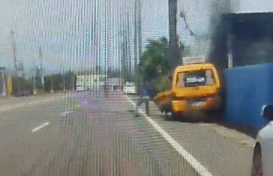 自撞造成車輛冒煙起火,火勢相當猛烈,民眾見狀緊急借滅火器撲滅,想要救出受困駕駛,但車子已陷入火海,駕駛逃生不及命喪火窟。