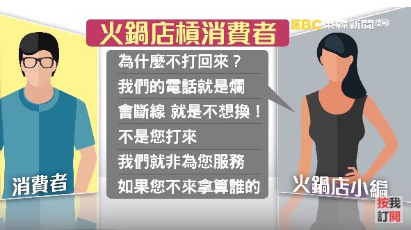 這時店家則改口回應:「為什麼不打回來?我現在告訴您,我們的電話就是爛,會斷線,就是不想換!不是您打來我們就非為您服務,如果您不來拿算誰的,算我們倒霉?因為您一通電話,就必須有一位同仁放下手邊工作為您服務,現場等候的都比較次級,您比較高貴?」